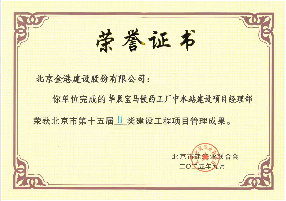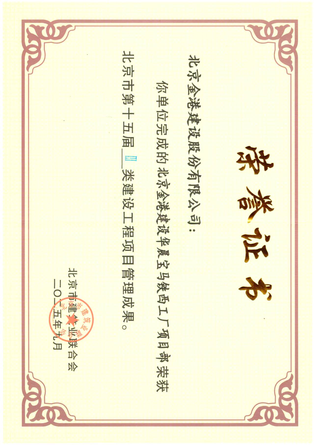 經(jīng)大會(huì)評(píng)審,我公司沈陽華晨寶馬項(xiàng)目所分享的管理成果,榮獲了“北京市建設(shè)工程管理III類成果獎(jiǎng)”。這一榮譽(yù)是對(duì)我公司在工程項(xiàng)目管理,特別是在技術(shù)創(chuàng)新與應(yīng)用方面所做努力和取得成績(jī)的充分肯定。
